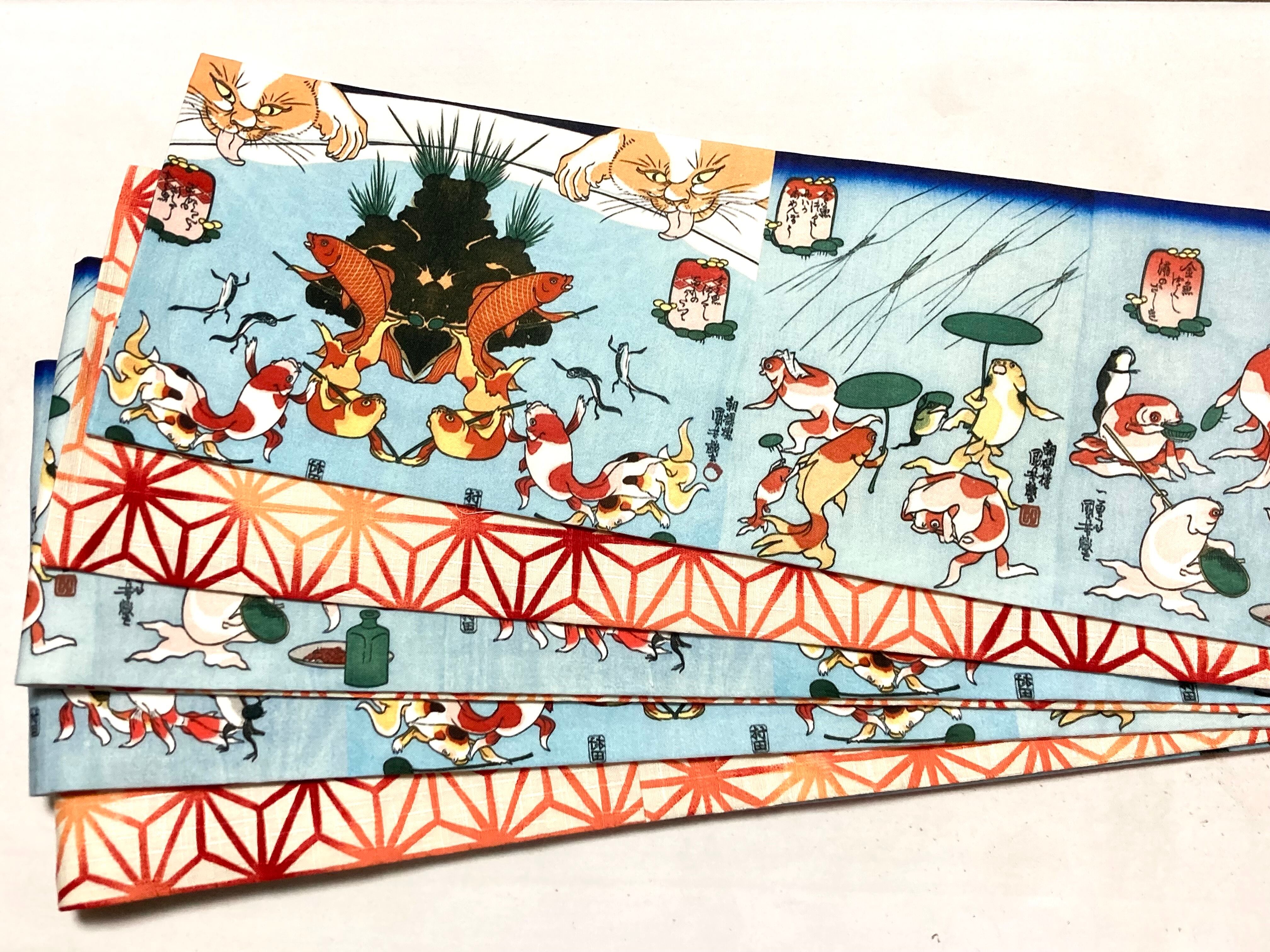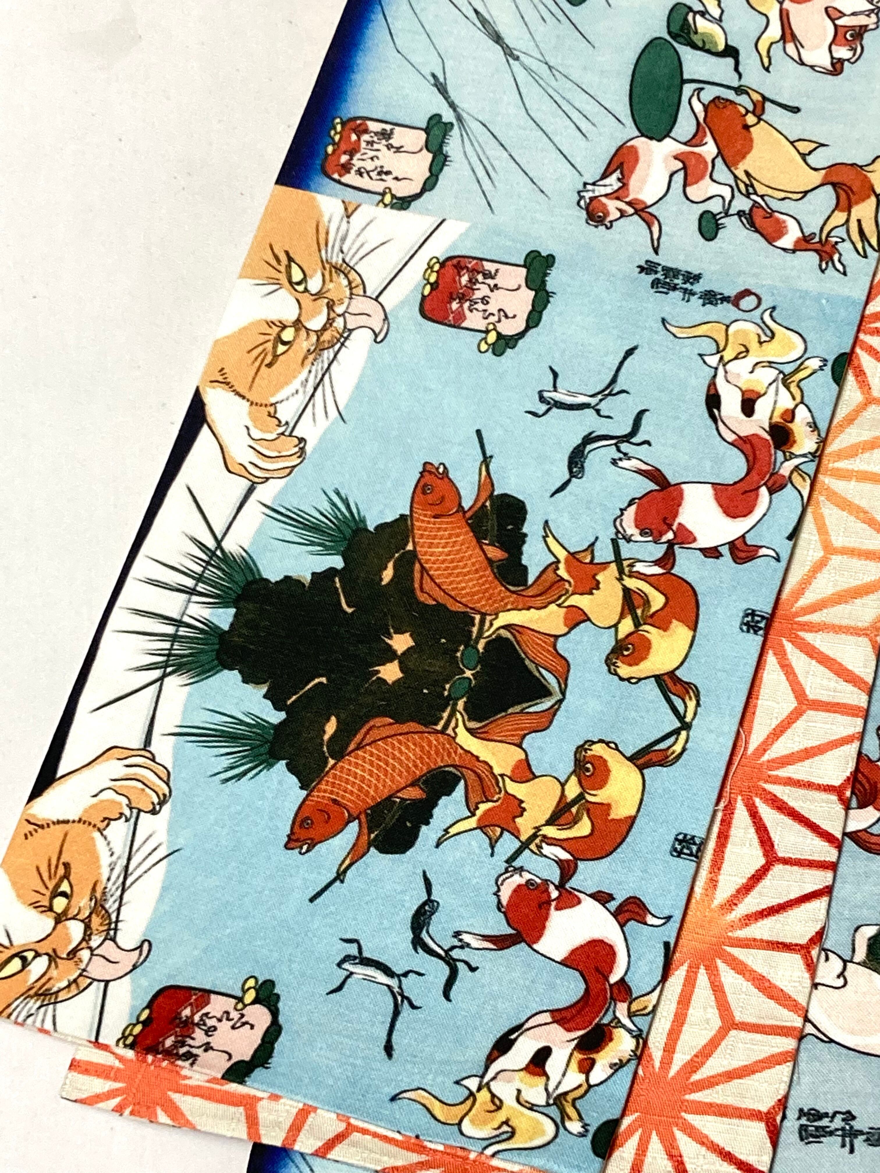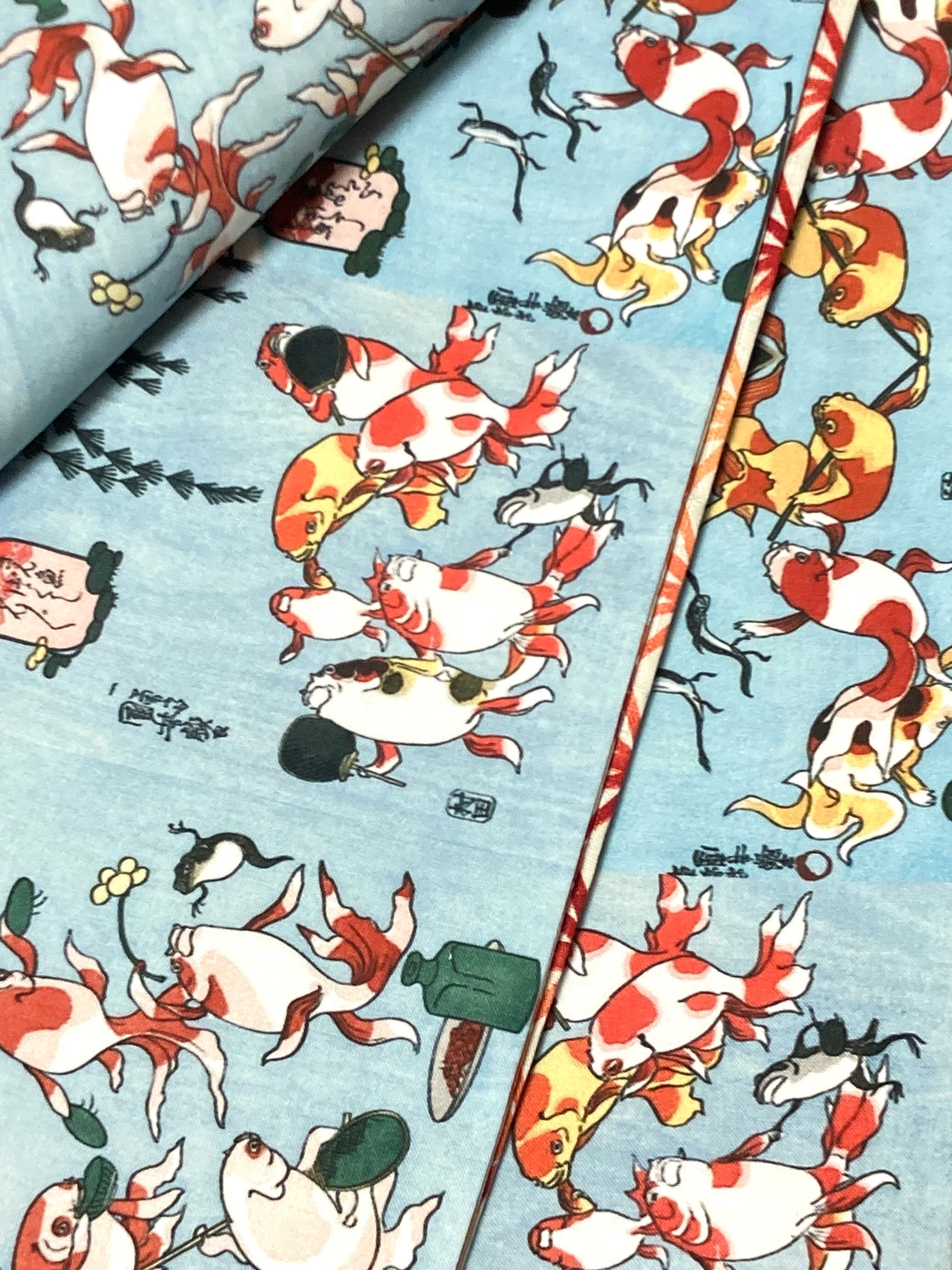 半幅帯 浮世絵 金魚 麻の葉 着物 浴衣 001