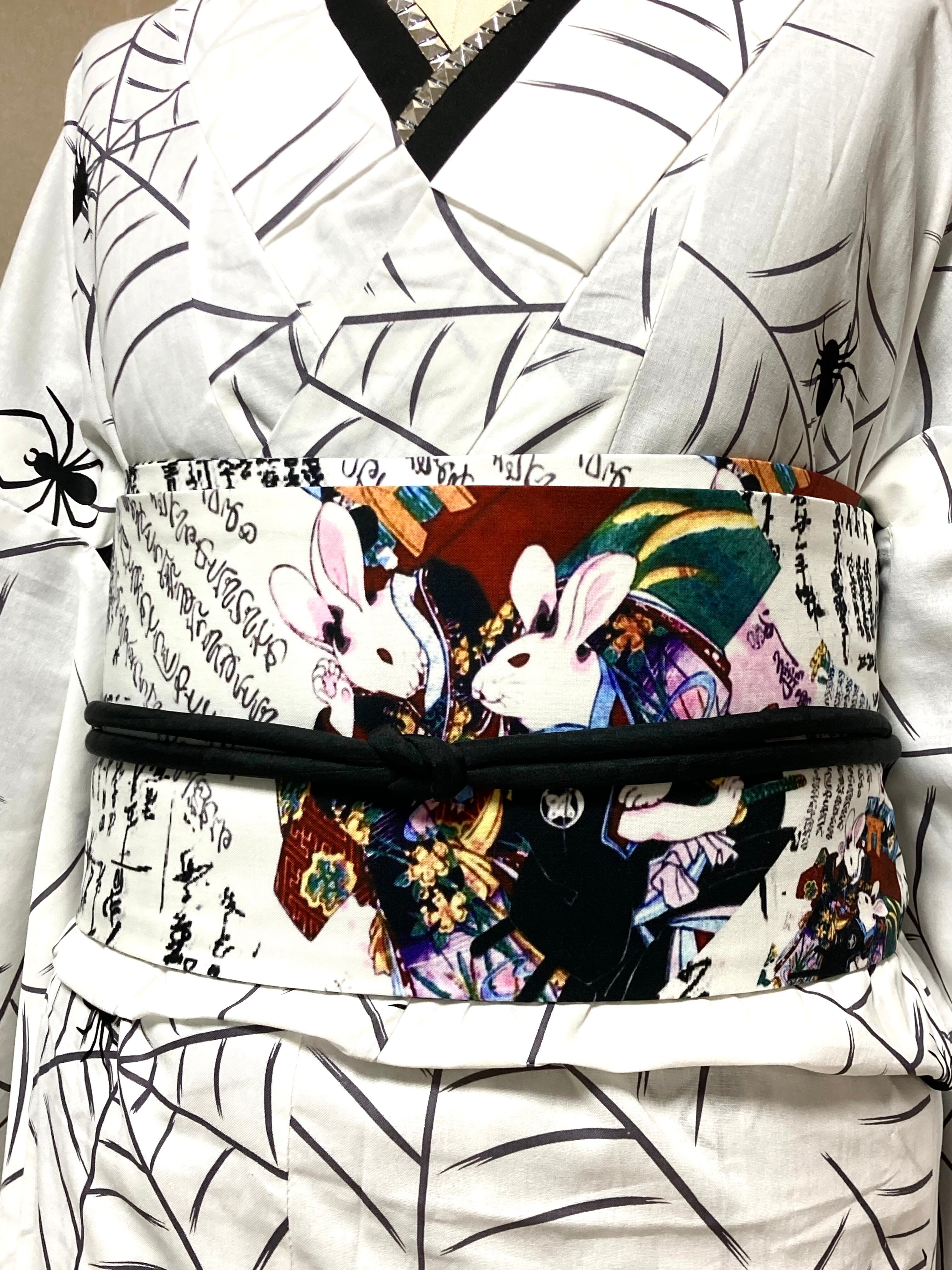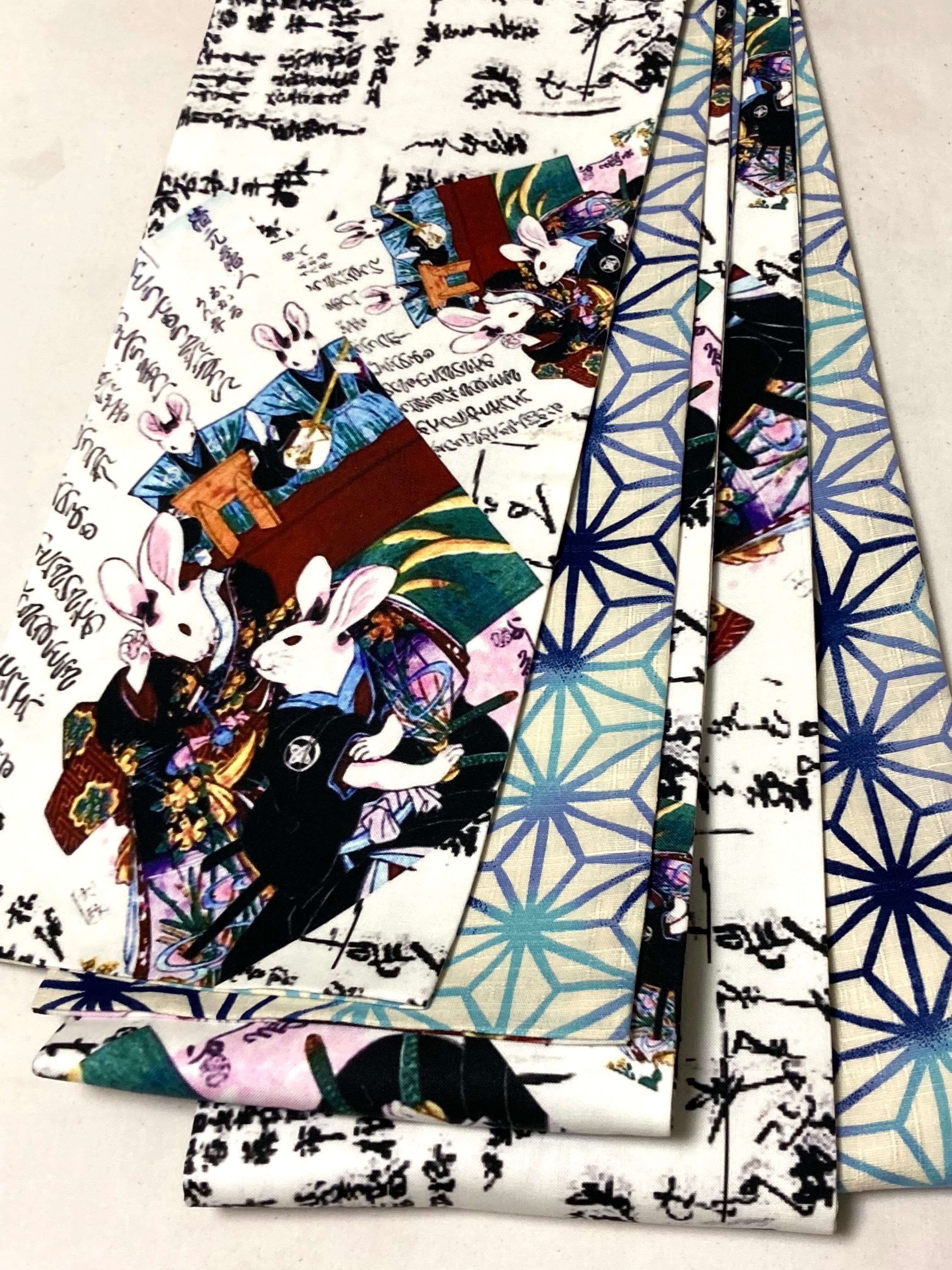 半幅帯 浮世絵 うさぎ うさぎのお軽 麻の葉
