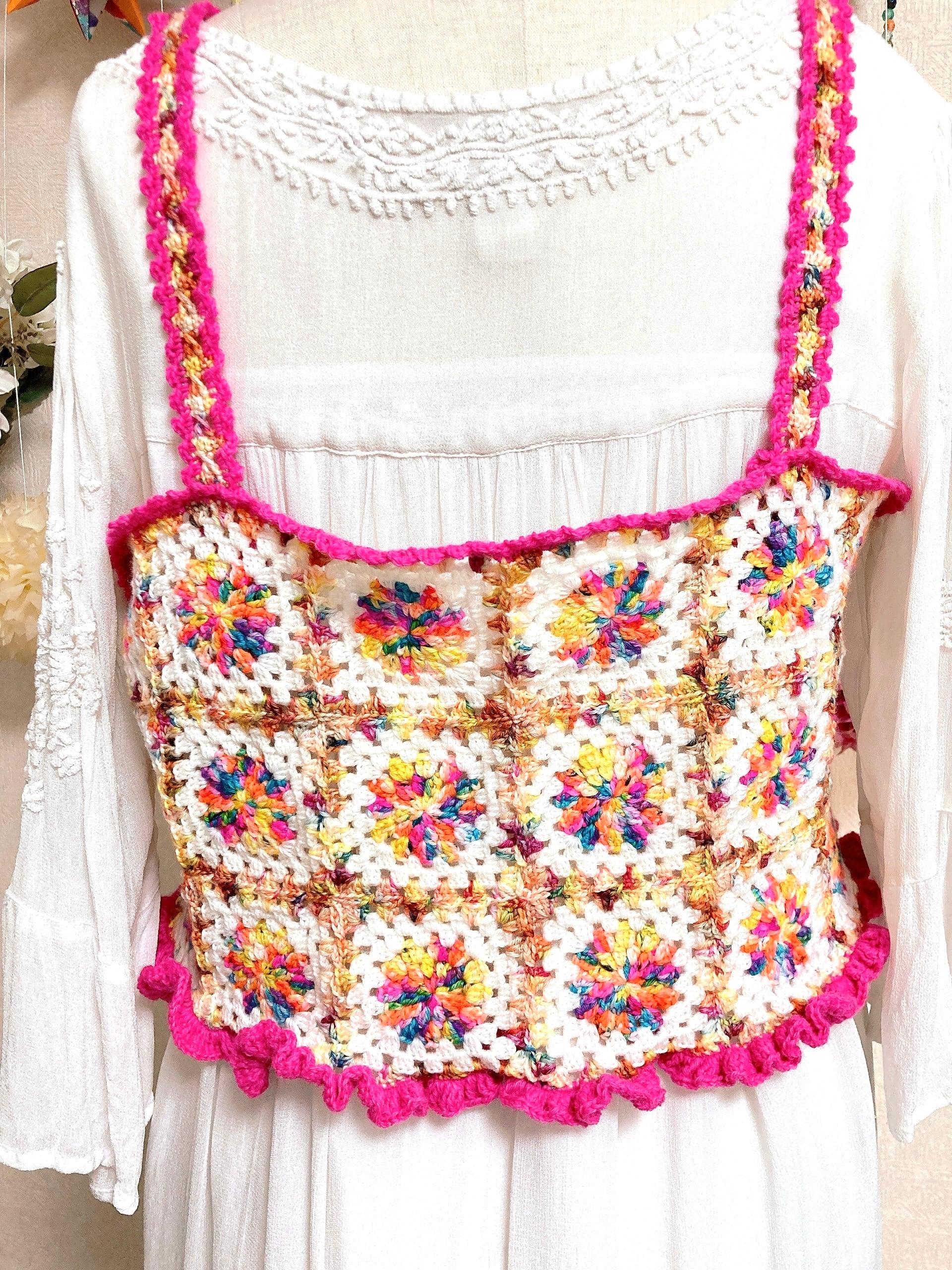 グラニースクエア モチーフ編みビスチェ 手編みビスチェ ビスチェ 手編み あみもの 編み物 ハンドメイド