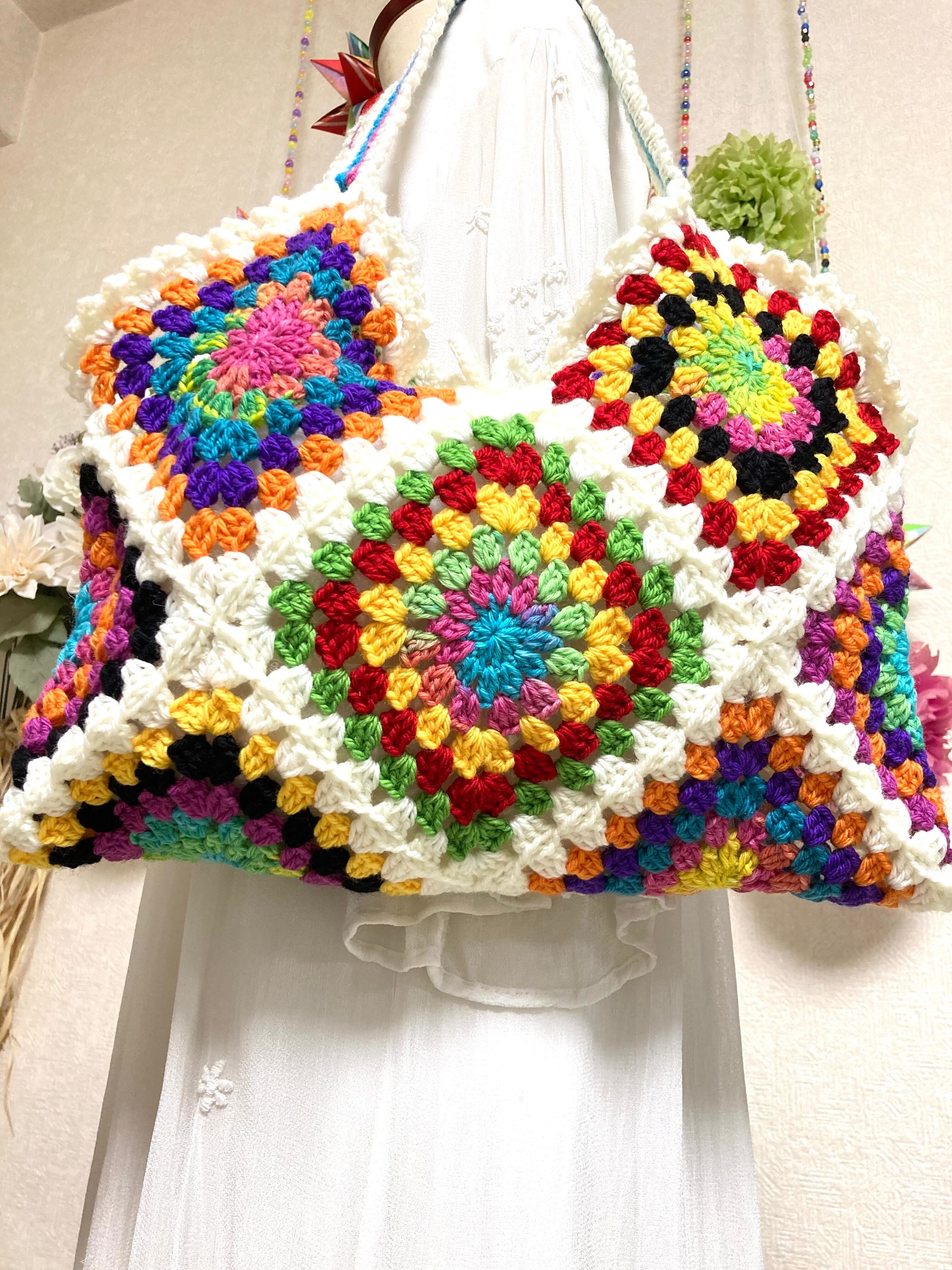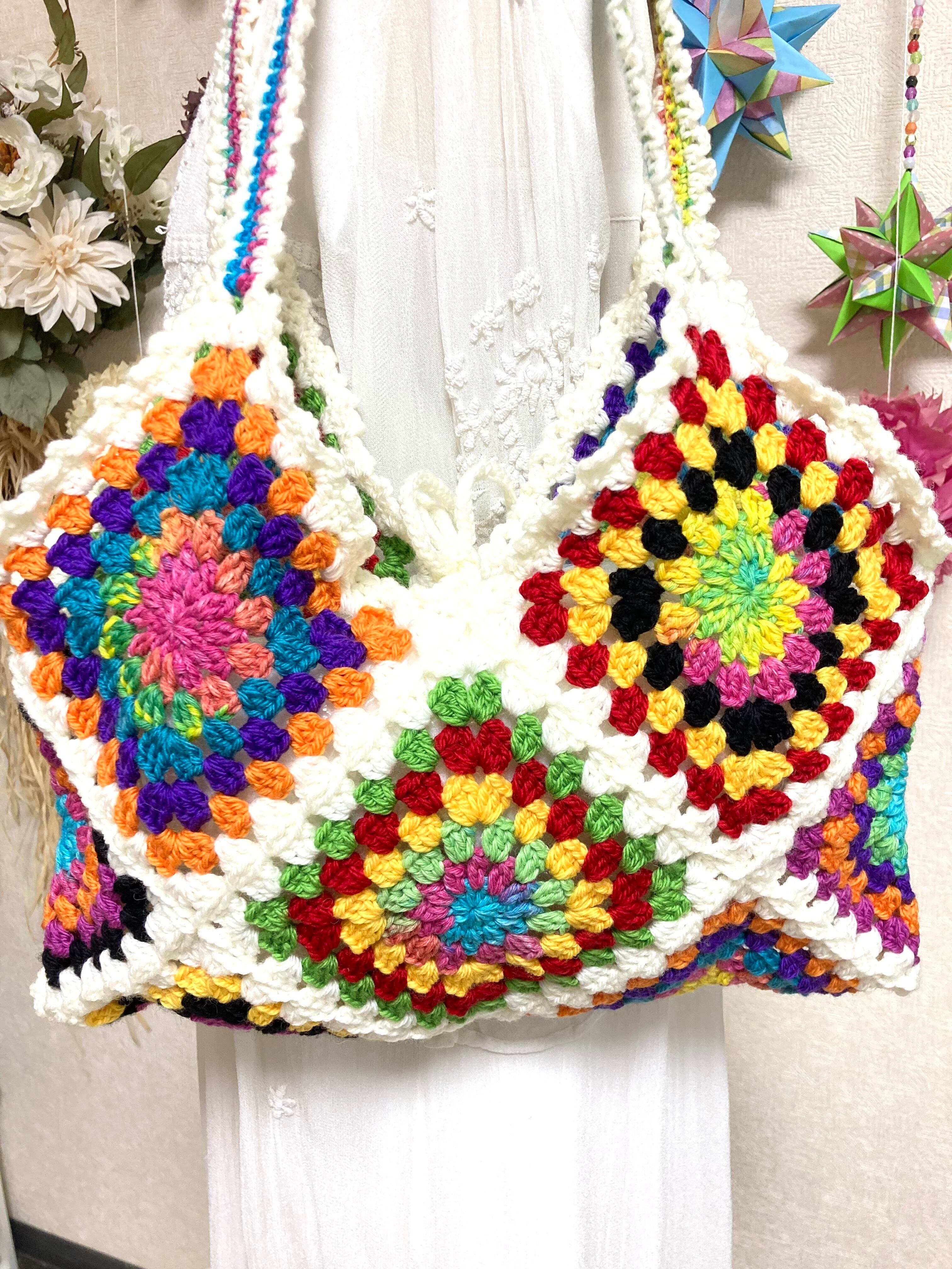 カラフルでとっても可愛いグラニースクエアのバッグです♡